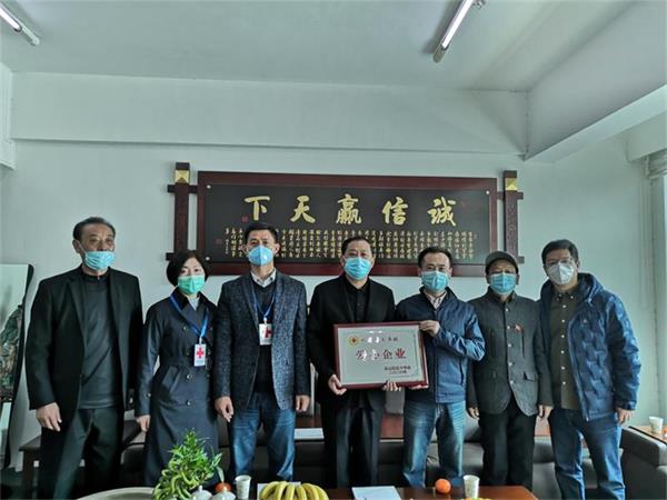 最后泉山区红十字会给爱体育app首页_爱体育(中国),颁发了爱心企业牌匾,并合影留念。